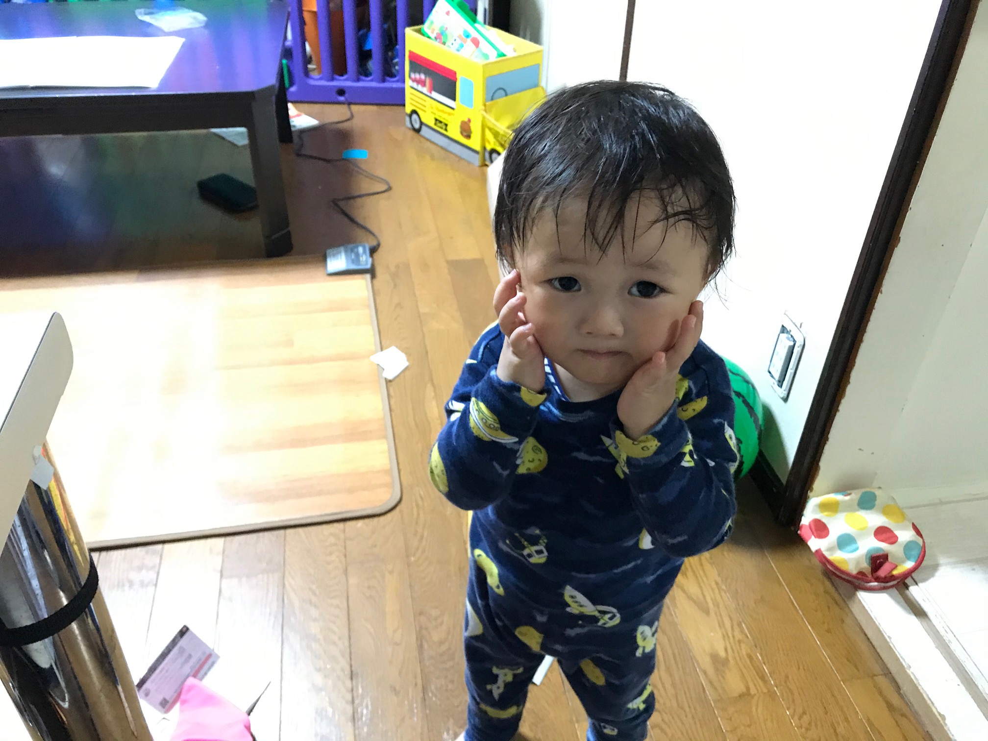 クリーム塗り終わって、ティッシュを取りに行くたいちゃん。